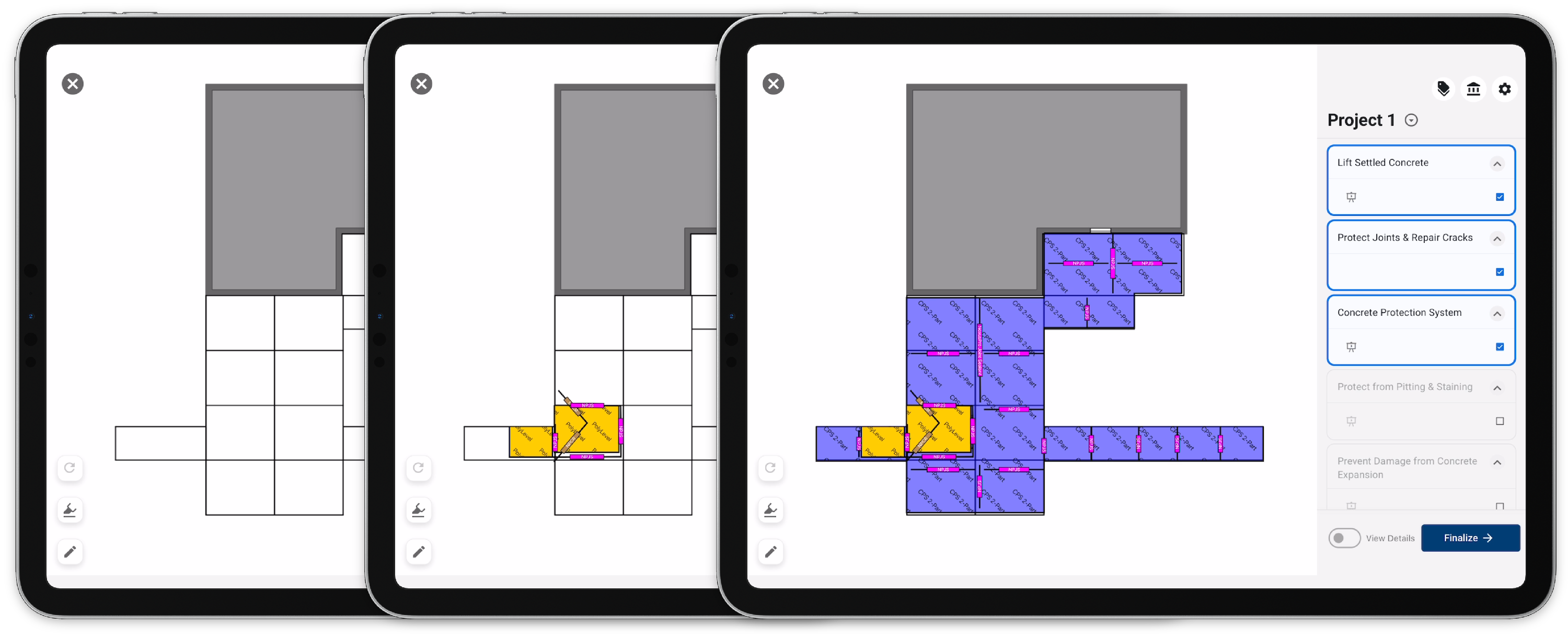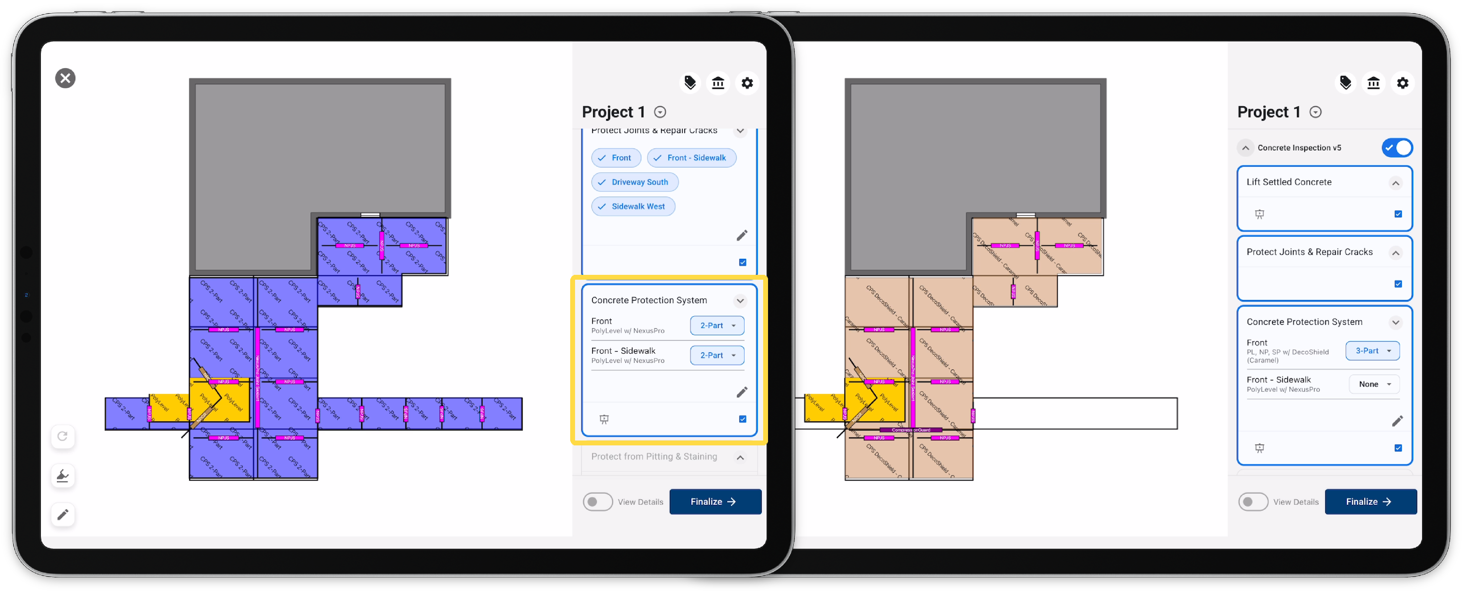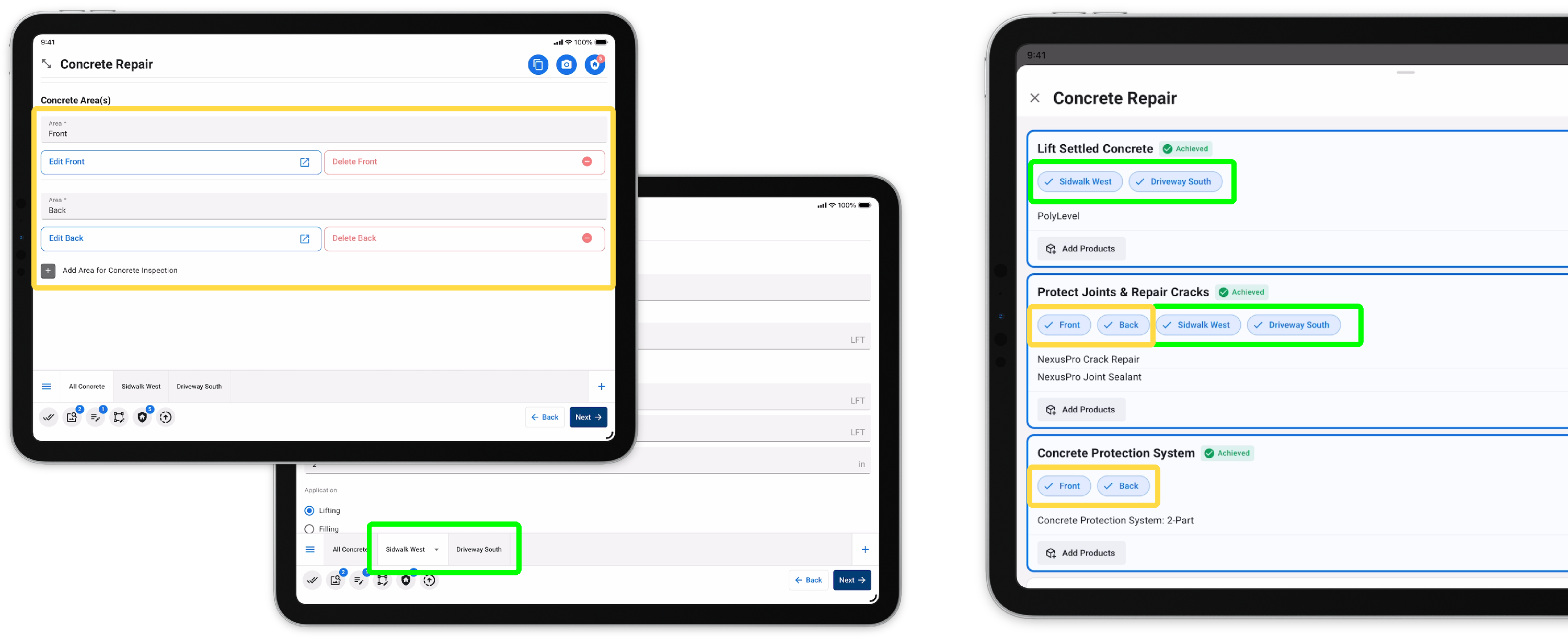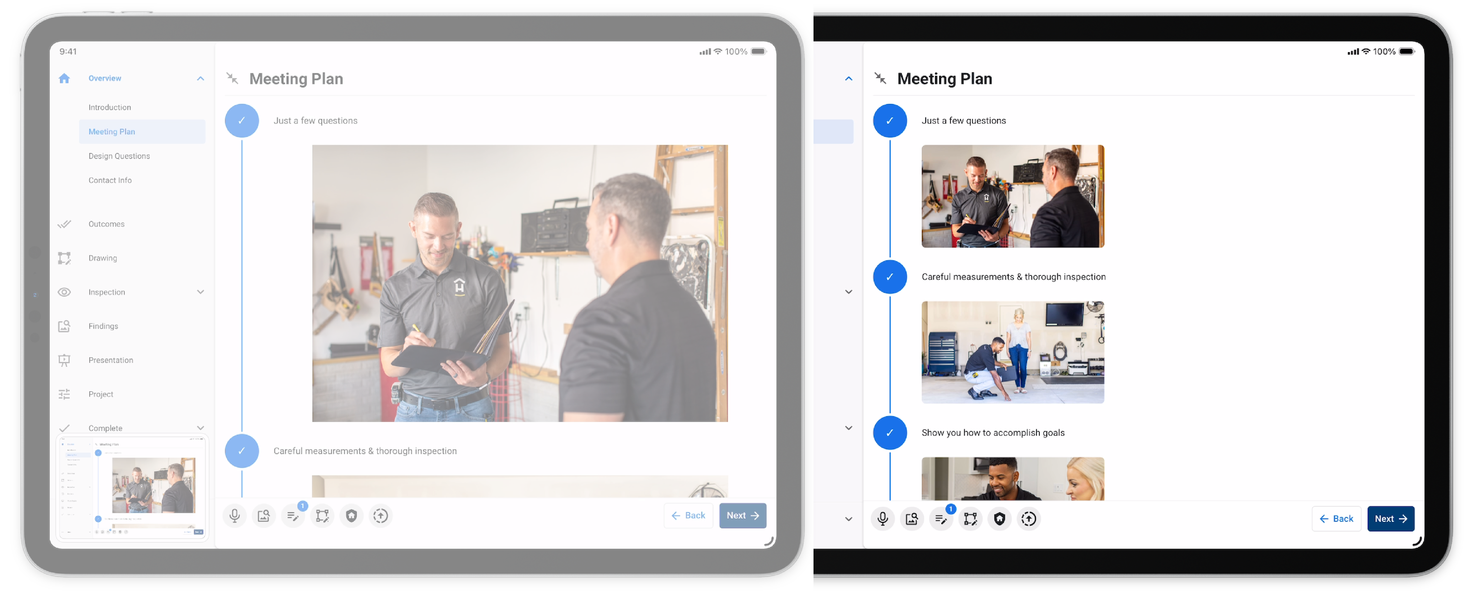 This allows recommendations to a customer that weren't discovered during the inspection. Once added, the user will be able to present, add products, and review the area project without navigating back to the inspection.