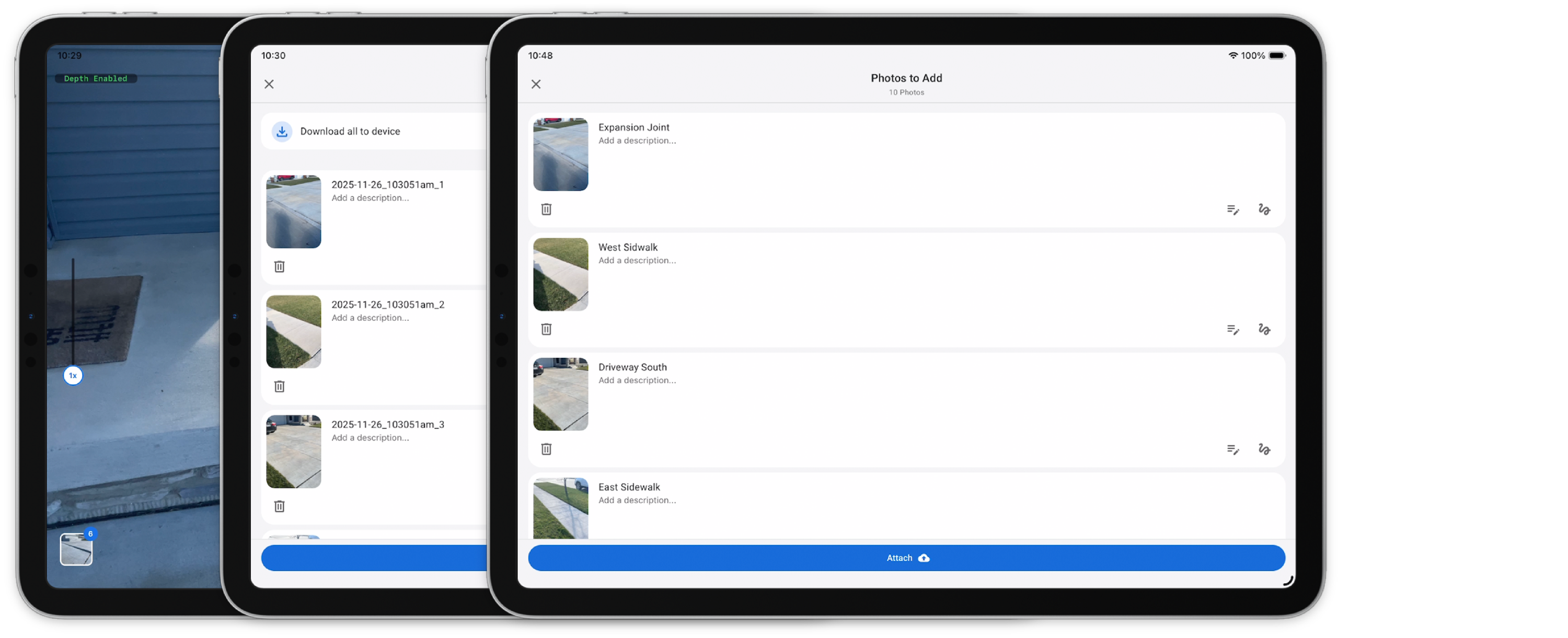 Upon capturing photos, there are newly designed screens that provide the user with tools for each photo, including the option to save to the camera roll, annotate photos, and edit the photo's title and description.