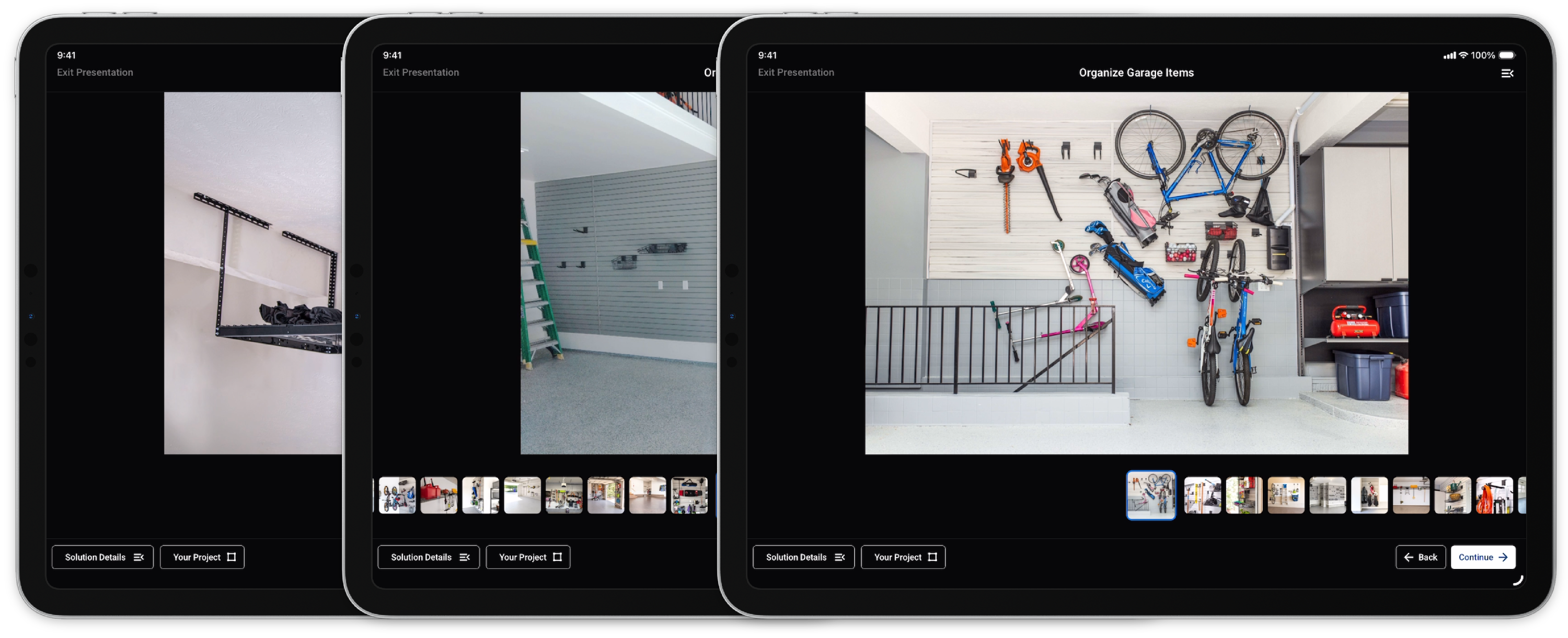 The slideshow presentation has been upgraded to incorporate an additional display type. For use-cases such as before & after photos, process photos, etc., slideshows can now be presented similarly to the examples below. When this feature is activated, all photos will appear as thumbnails below the selected photo, facilitating a clearer understanding of the available images and making it easier to select and view them.