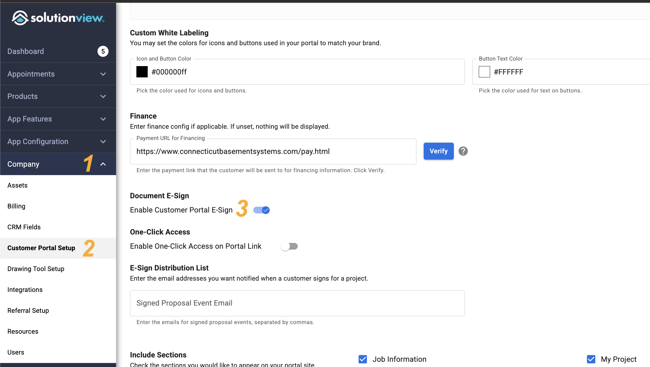 Now scroll to Section Labeled "Document E-Sign" and toggle on "Enable Customer Portal E-Sign"
