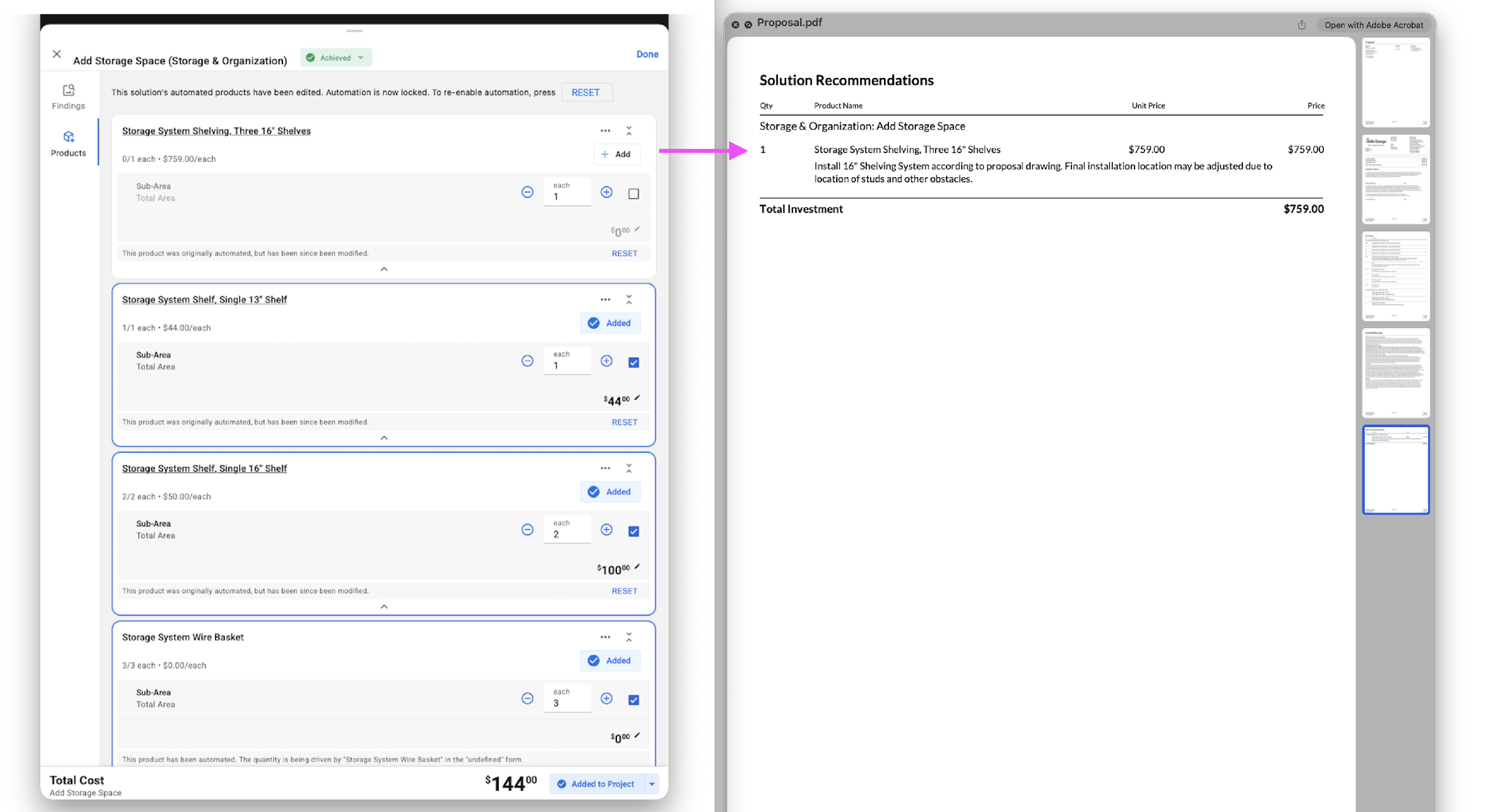 Prior to this release, products that were removed from an accepted solution were not being included in the Solution Recommendations. Now, when a product is removed from a solution that has been accepted with other included products, the declined product will appear in the Solution Recommendations section in PDFs that include that block.