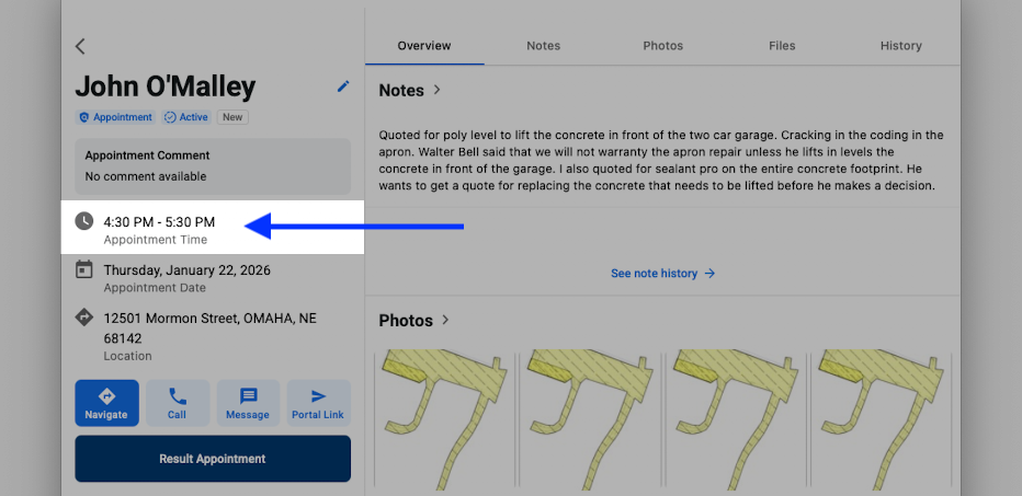Within the appointment screen, we have improved the appointment time by including the end time in addition to the previously available start time.