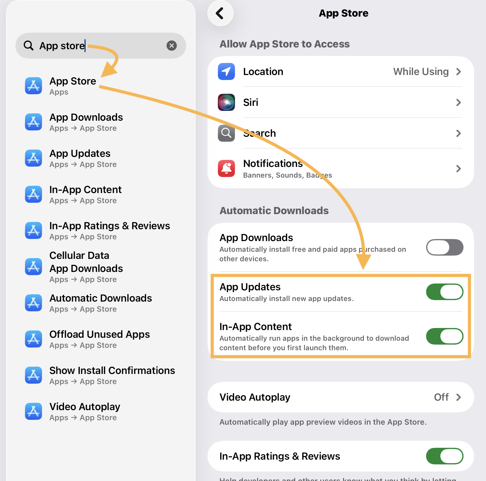 Now, on the “App Store” page, you can toggle on the automatic update settings to trigger updates to be automatically added instead of installed manually.